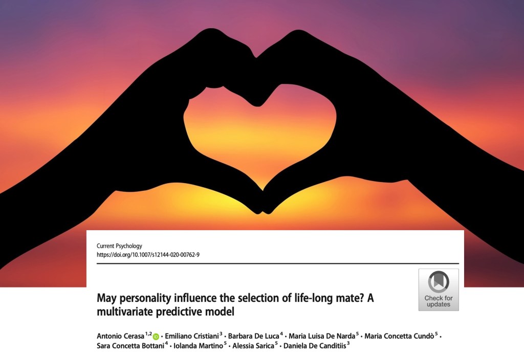 Neuroscience of LOVE Maggio 7, 2020 / antoniocerasa Is there a systematic pattern in human mating? This question has been the source of introspection for centuries among philosophers and psychologists. The idea that individuals tend to choose a romantic partner following similarities on personality traits has always attracted much attention in the psychological literature, although results were controversial.This is our tentative to untangle the knots using machine learning. Condividi: Fai clic per condividere su X (Si apre in una nuova finestra) X Fai clic per condividere su Facebook (Si apre in una nuova finestra) Facebook Mi piace Caricamento... Correlati