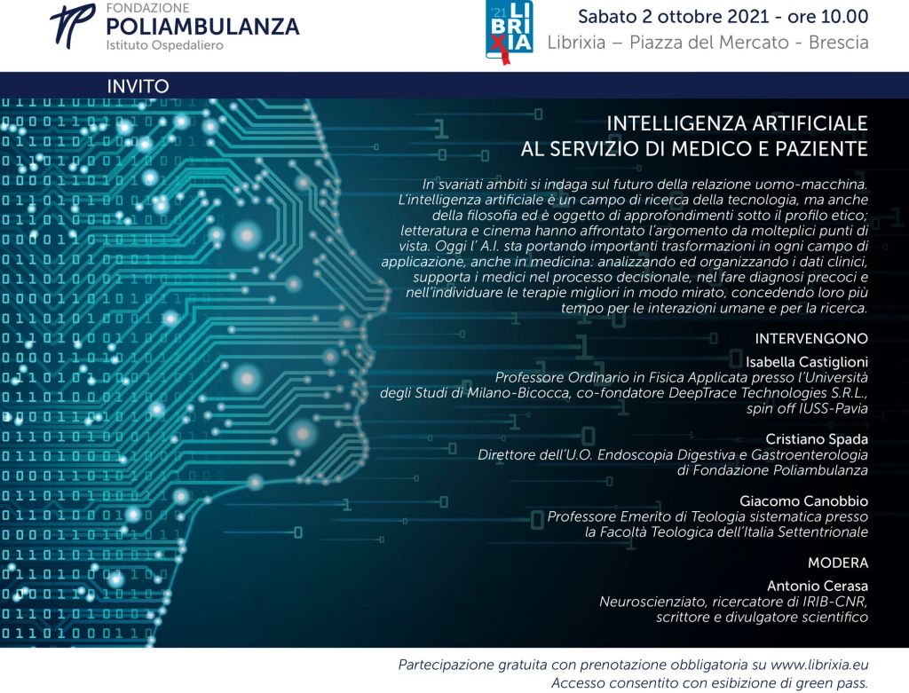 A Brescia parleremo insieme alla prof.ssa Castiglioni, Prof Spada e Mons. Canobbio di come l’Intelligenza Artificiale cambierà la medicina tradizionale.